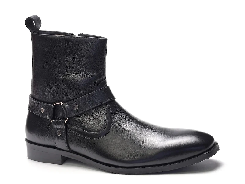 Be bold and confident in the Anthony Veer Westin boot. Harness detail brings a striking look to the leather boot, designed with a convenient inside zipper. Rubber sole with low block heel provides enhanced stability and appeal.