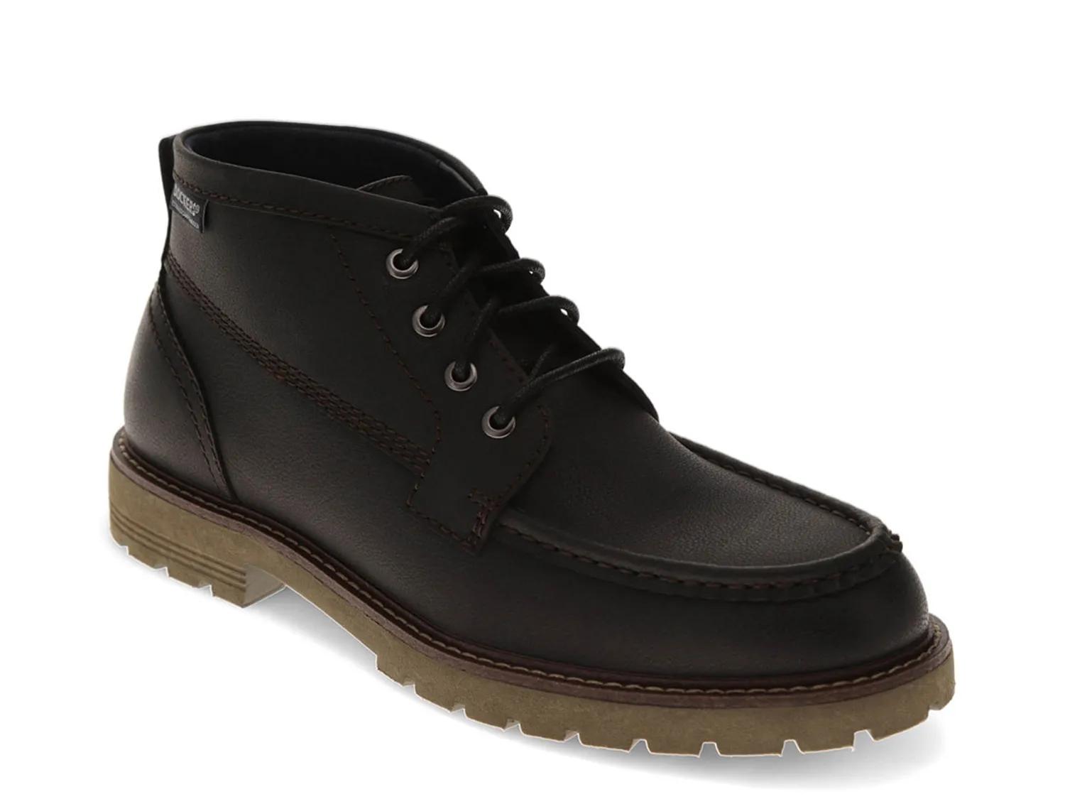 Combined rugged charm with classic elegance, the Weston boot from Dockers offers a versatile look that suits any occasion. Featuring polished upper, this moc toe boot is designed with Supreme Comfort EVA footbed for custom support and breathability. Moisture-controlling lining and quilted heel counter lining provide dry comfort. Lightweight, lugged EVA sole with applied welt offers high stability and durability.