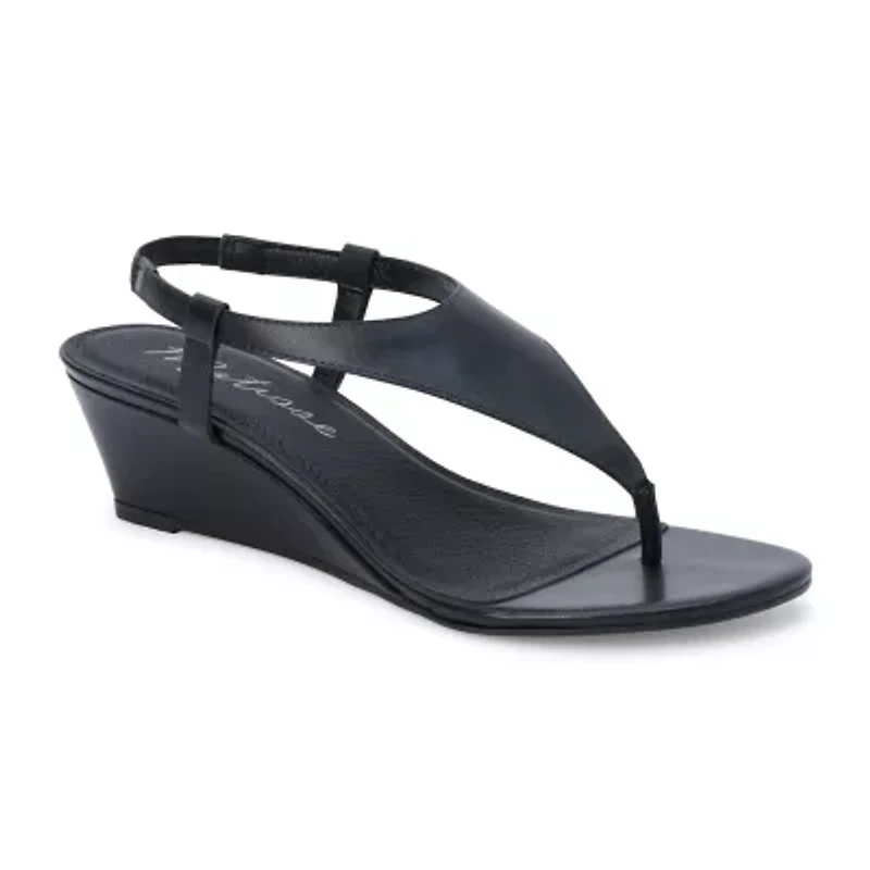 Slingback wedge sandal with a V-shaped upper. Slip-on Imported Product Specifications 2 in / 5.1 cm .25 in / .635 cm M Material Leather