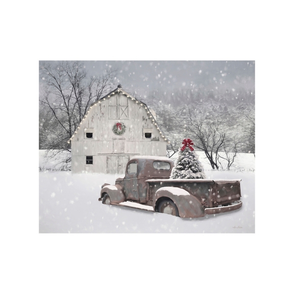 Decorate your home for the holidays this year with our Whisper of Christmas Canvas Art Print! You'll love how the festive flair it brings to your walls is perfect for the whole winter season. Art measures 30L x 1.25W x 24H in. Distinctively printed with Giclee technology on thick, archival-grade polyester canvas Canvas stretched over solid wood Wrapped edges complete the look Features a white, snow-covered barn and a vintage truck with a pine tree in the bed Hues of white, red, green, gray, brown, and black Weight: 5.67 lbs. Hangs from back-mounted hardware Care: Dust with a soft, dry cloth. This item is available at Kirklands.com only, not available in stores. Please note: this item cannot be shipped to APO/FPO addresses.