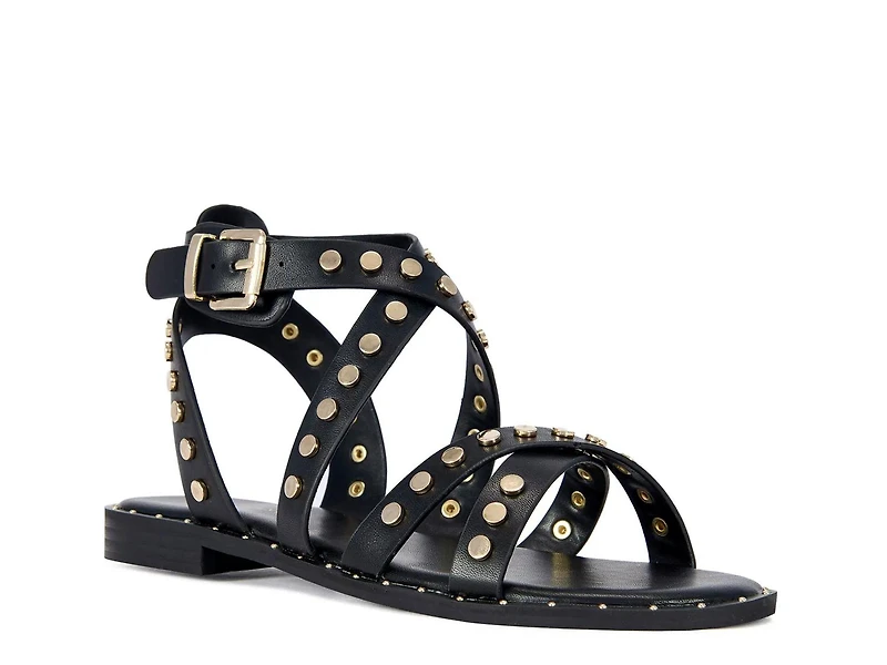 The Whistler sandal from Azalea Wang brings a fresh edge to your warm-weather wardrobe with its strappy silhouette and studded detailing. This sandal's round open toe and adjustable ankle strap create a versatile, city-ready look that easily transitions from casual days to evening plans. With its bold hardware accents and sleek design, it’s a statement piece that adds attitude without trying too hard.