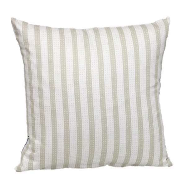 Give your living room a refresh with this White and Tan Dotted Stripes Pillow. With a light, airy style, this pillow will easily complement your home decor! Pillow measures 16L x 16H in. Crafted of cotton with polyester fill Striped pattern with tiny dots Hues of white and tan Durable, woven design Matching reverse Care: Machine wash cold. Line dry. This item is available at Kirklands.com only, not available in stores. Please note: this item cannot be shipped to APO/FPO addresses.