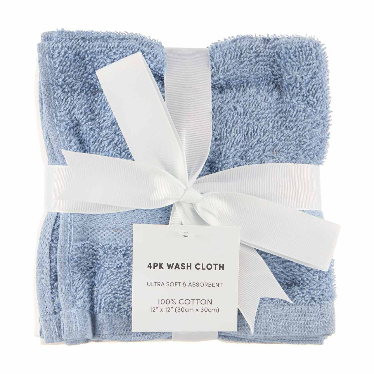 White & Blue Washcloth Set, 4 pk, 12 in x 12 in