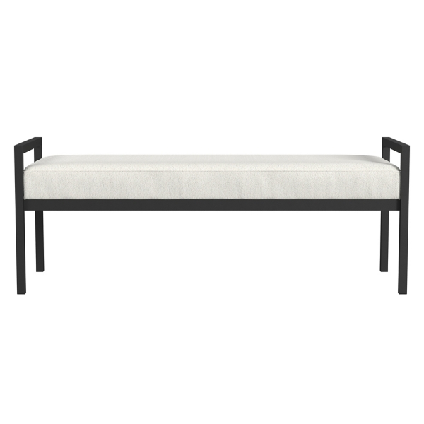 Elevate your home with our White Boucle Black Metal Bench! The white upholstery and black metal create a stunning contrast that will complement any home. You'll love how this modern bench looks in your entryway, living room, or bedroom! Bench measures 17.25L x 49.5W x 18.90H in. Crafted with a metal frame Upholstered in yarn with a foam cushion fill Matte black finish White boucle upholstery finish Features an open metal frame Weight capacity: 250 lbs. Assembly required Not intended for commercial use Care: Spot clean. This item is available at Kirklands.com only, not available in stores. Please note: this item cannot be shipped to APO/FPO addresses. WARNING: Cancer and Reproductive Harm - For more information go to www.P65Warnings.ca.gov .