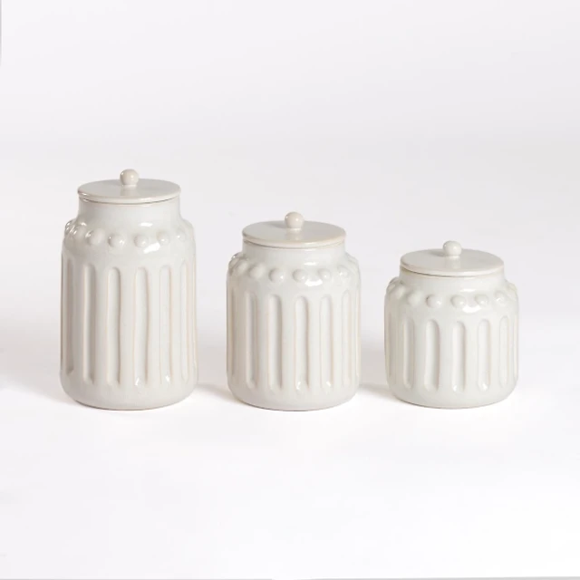 White Bubble Ceramic Canister, Set of 3