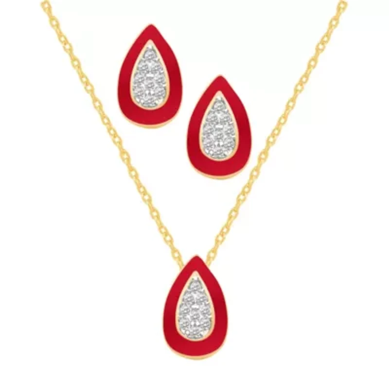 WHITE Enamel Pear shape Earrings Pear shape Pendant Box Set in 17 Inch Chain + 2in Extender 2 Polished finish Warranty available India Imported Product Specifications 2mmx2mmx2mm, 2 Material & Care Metal, Gold-tone metal Use silver polishing cloth on silver items.