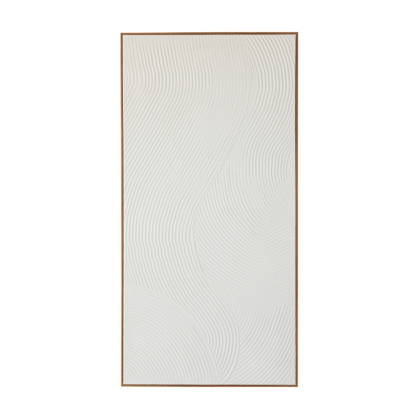The White Geometric Dimensional Canvas Art Print showcases an abstract design made up of grooved, swirled texture. Its neutral, understated look will pair perfectly with modern and contemporary decor. Framed print measures 23.7L x 1.5W x 47.2H in. Distinctively printed on stretched canvas Brown wood frame around wrapped canvas Abstract subject with grooved texture Hues of white Weight: 7.3 lbs. Hangs from back-mounted hardware Care: Dust with a soft, dry cloth. This item is available at Kirklands.com only, not available in stores. Please note: this item cannot be shipped to APO/FPO addresses.