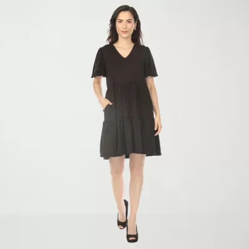 White Mark V-Neck Womens Short Sleeve A-Line Dress in Chattanooga, TN