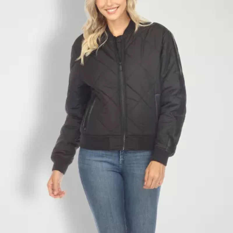 The perfect blend of style and functionality. This jacket features a diamond quilted pattern with subtle pu sleeve stripes on the sleeve, creating a trendy and contemporary look. Its lightweight construction makes it ideal for transitional weather, while the bomber-style silhouette adds a touch of urban flair. With side pockets and inside pockets, this jacket offers ample storage space for your essentials. Elevate your fashion game with this lightweight puffer bomber jacket.