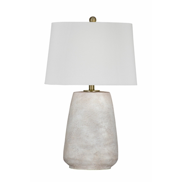 Illuminate your space with timeless charm and contemporary flair! This White Resin Kasi Table Lamp features neutral tones and a versatile design, making it a seamless addition to your space. Total lamp measures 27H in. Crafted of resin Whitewash finish Round base Hardback tapered drum shade in white fabric Shade measures 17H x 17 in. in diameter at widest Socket accommodates a 100-watt, Type E26 three-way bulb Switch type: 3-way Includes a 60 in. plug-in cord Weight: 6 lbs. Care: Dust with a soft, dry cloth. Do not exceed specified wattage. This item is available at Kirklands.com only, not available in stores. Please note: this item cannot be shipped to APO/FPO addresses.