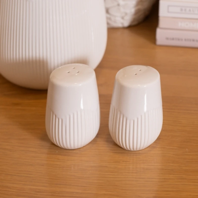 White Ribbed Stoneware Salt and Pepper Shaker Set