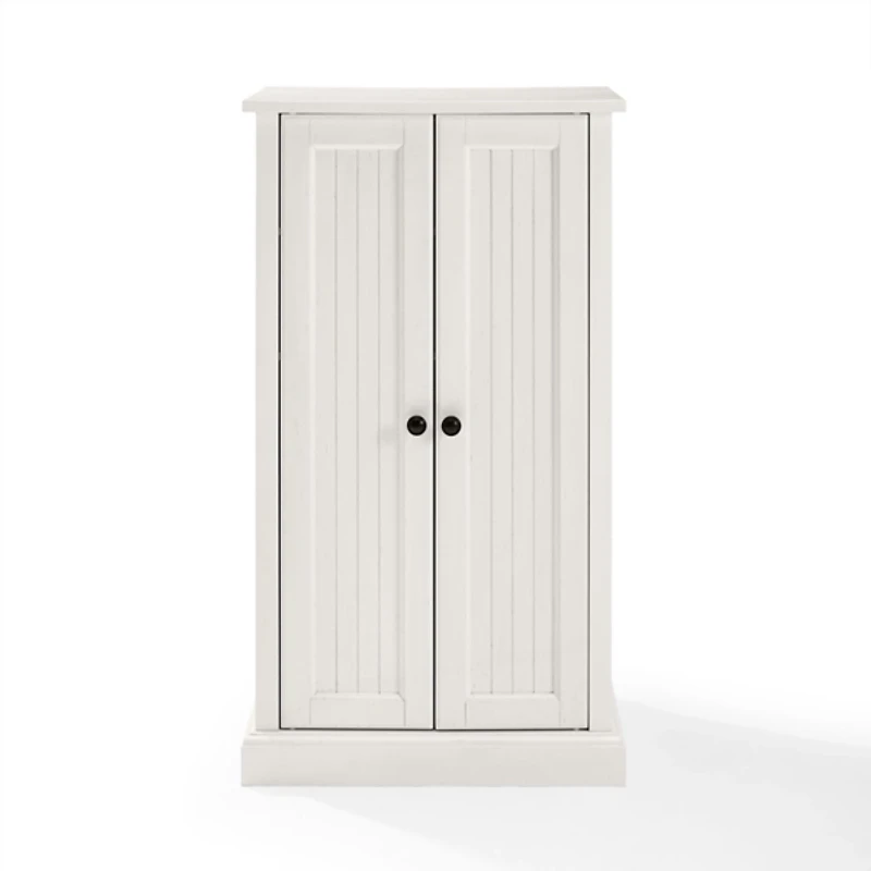 Revamp your space easily with the addition of our White Seaside Accent Cabinet. You’ll love elegant and classic design of this stunning and functional piece. Cabinet measures 23.5L x 14W x 41.25H in. Crafted of wood and metal hardware White finish Features four (4) adjustable and removable shelves Features beadboard paneling Weight: 54.56 lbs. Features gunmetal hardware Assembly required Not intended for commercial use Care: Dust with a soft, dry cloth. This item is available at Kirklands.com only, not available in stores. Please note: this item cannot be shipped to APO/FPO addresses. WARNING: This product can expose you to chemicals including wood dust and lead, which are known to the State of California to cause cancer or birth defects or other reproductive harm. For more information go to www.P65Warnings.ca.gov/furniture .