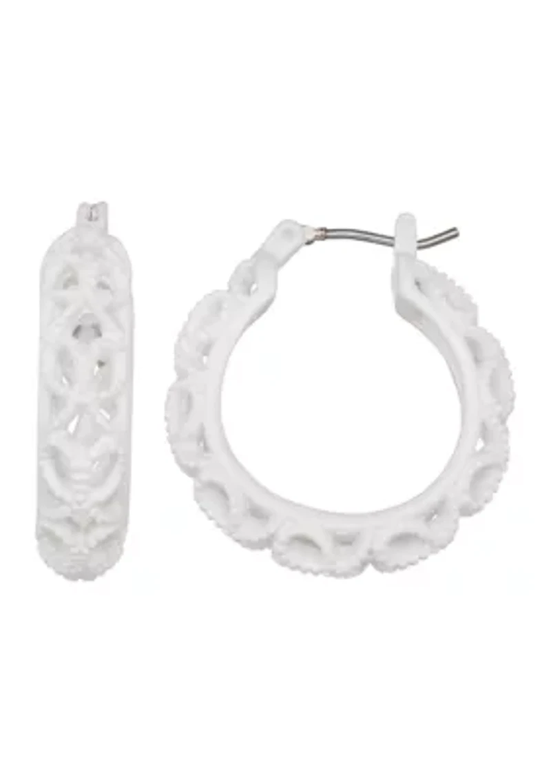 White Stencil Hoop Earrings
