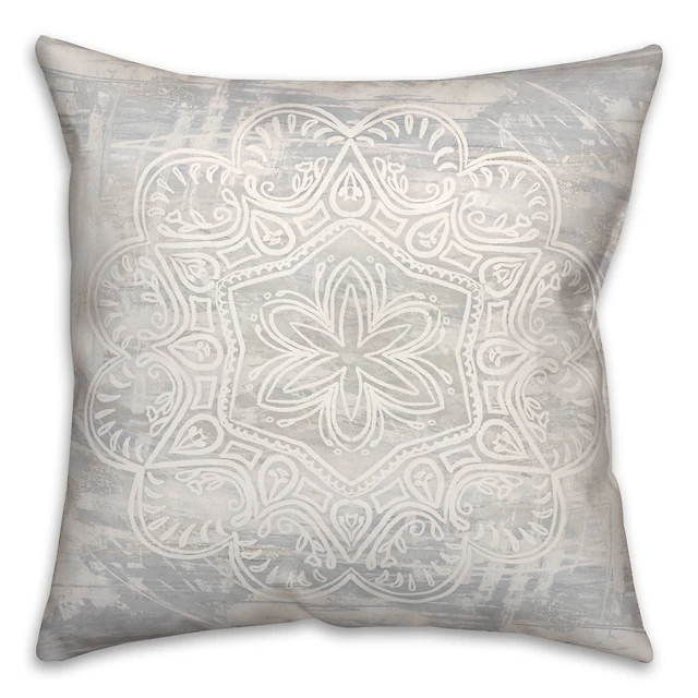 White Textured Medallion I 18" x 18" Throw Pillow