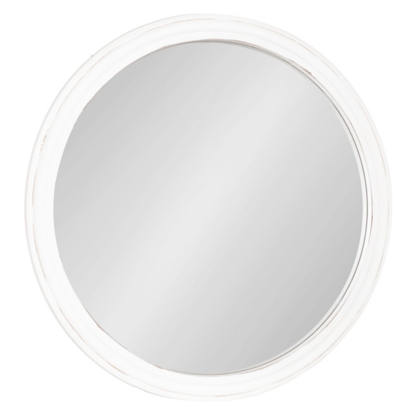 The White Wood Round Mansel Mirror will brighten up your space with transitional style! The subtle texture and light distressing lends rustic appeal to its simple design. Overall mirror measures 1.25W x 28 in. in diameter Crafted of wood White finish Round shape Weight: 12 lbs. Hangs from back-mounted hardware Care: Dust with a soft, dry cloth. To clean mirror, spray a small amount of glass cleaner onto a lint-free cloth and wipe clean. This item is available at Kirklands.com only, not available in stores. Please note: this item cannot be shipped to APO/FPO addresses. WARNING: Cancer and Reproductive Harm - For more information go to www.P65Warnings.ca.gov .