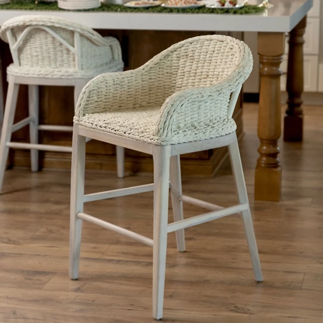 Whitewash Woven Rattan Counter Stool