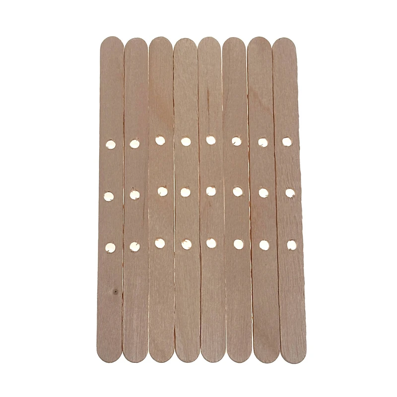 Align candle wicks just where you want them with these wick centering tools from Make Market. Made from birchwood, each tool features three holes where you can thread the wick through before you pour the wax into a vessel of your choice. Follow the included instructions and use a wick sticker (not included) to secure the wick in place.Details:Natural4.9" x 0.38" x 0.08" (12.4cm x 0.96cm x 0.2cm) each24 centering toolsBirchInstructions:Stick the wick to the vessel with a wick sticker. Pour in melted wax. Use a wick centering tool, let the wax dry, remove the tool, and trim the wick.Keep all candle crafting supplies out of reach of children and pets. Not recommended for children under 15. Please carefully read all warnings and instructions prior to starting any candle making project.