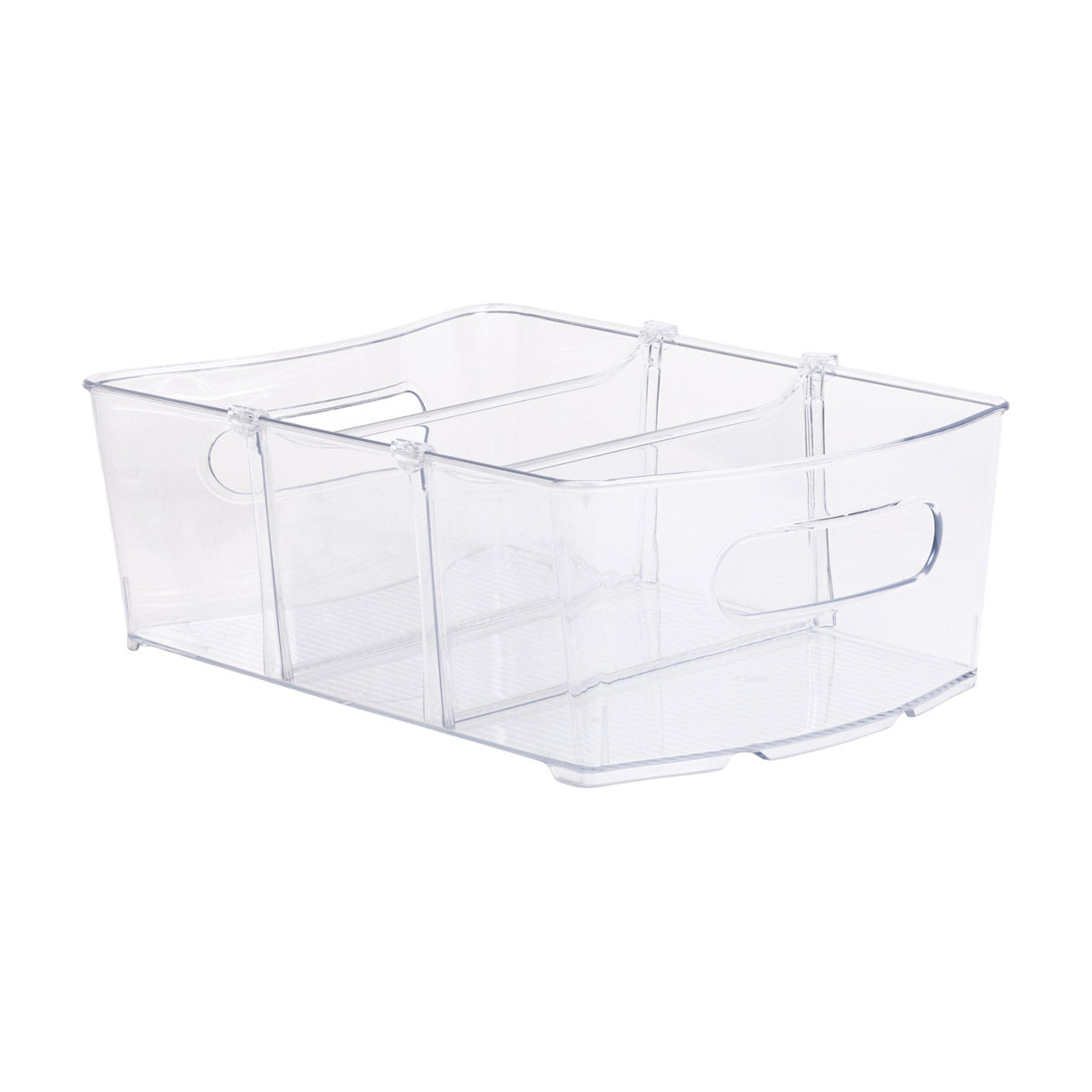 Organize your home with ease using our versatile Wide Storage Bin with 2 Dividers. This clear plastic bin is designed to keep your belongings neatly sorted and easily accessible, making it a perfect addition to any room in your house.