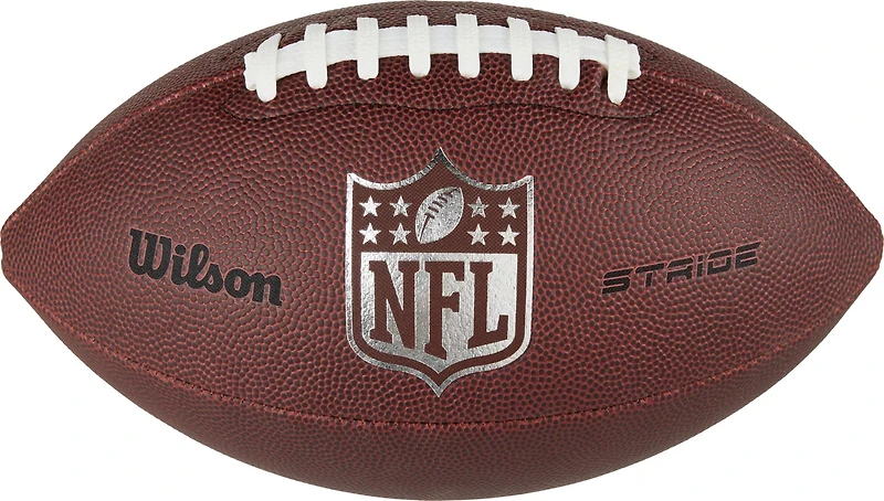 This Wilson NFL Stride Football brings an authentic feel to backyard games and flag football. It's made with the new NFL pro laces suited to players' preferences with a performance construction for more accurate spirals. And to eliminate the break-in period, it uses prepped composite material that feels game-ready from the start.
