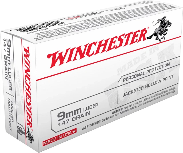 Winchester USA 9mm Luger 147-Grain Centerfire Pistol Ammunition - 50 Rounds