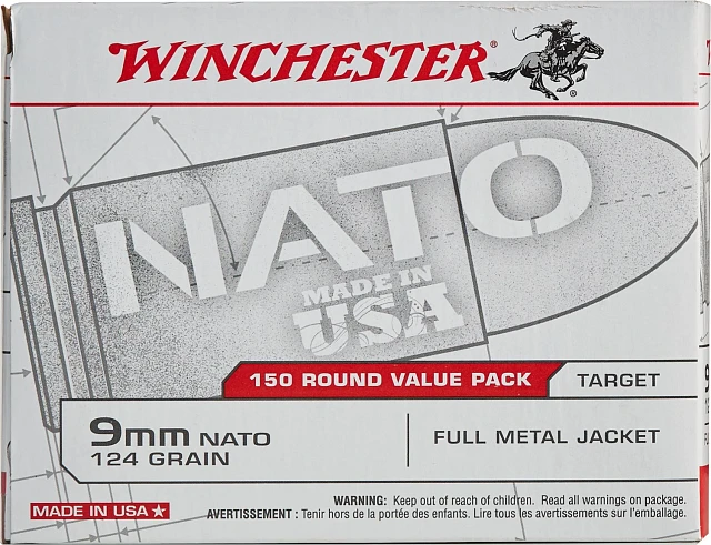 Winchester USA 9mm NATO 124-Grain Handgun Ammunition - 150 Rounds