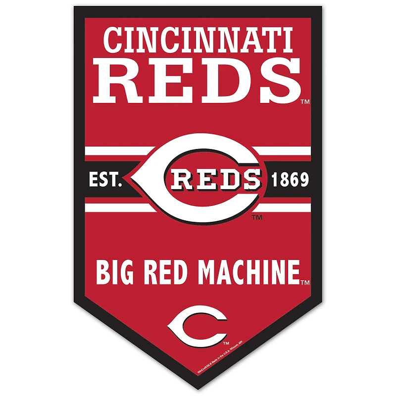 Show your Cincinnati Reds pride with this WinCraft 11" x 17" Chevron Wood Sign, a perfect addition to any fan cave, living room, or office. This high-quality sign is crafted from durable 1/4'' thick hardboard wood and features a matte finish laminate top for added durability. The vibrant, full-color printed graphics showcase the iconic team logo alongside the established date and famous slogan, making it a timeless piece full of energy for any fan. Ready to hang straight out of the box, this sign makes it easy to display your love for the game in style.