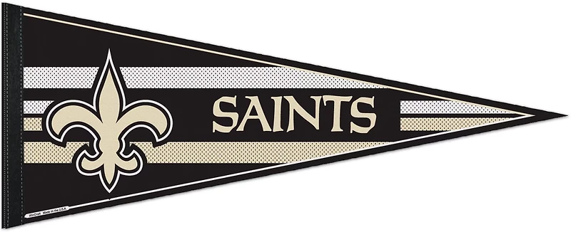 Celebrate your favorite team with the WinCraft New Orleans Saints Primary Pennant. The classic pennant shape and bold team graphics create a sporty look perfect for decorating your TV room or display in a fan collection.