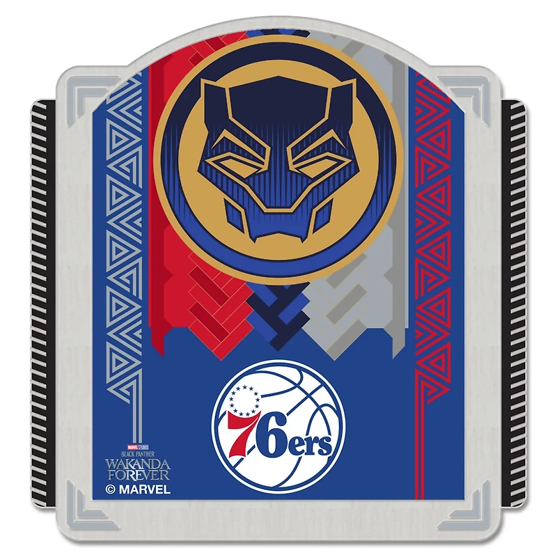 Your long-awaited crossover of the Philadelphia 76ers and Wakanda has finally arrived in the form of this Black Panther 2 Jewelry card by WinCraft Great for pin trading or as an everyday accessory this collector pin is a spirited piece to have on hand