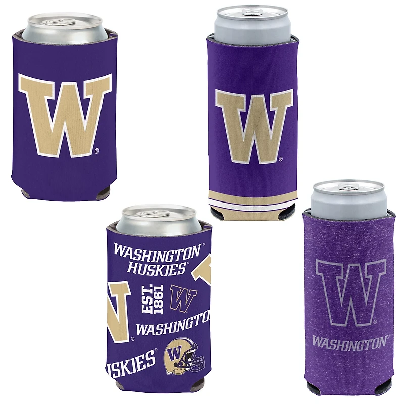 Sit back relax with your favorite drink and watch the Washington Huskies with one of four can coolers from WinCraft Featuring bold graphics on the front and back these can coolers assure you can rest easy in knowing your loyalty to the Washington Huskies can't be questioned This set features two standard-size 12oz coolers and two slim coolers perfect for any size drinks