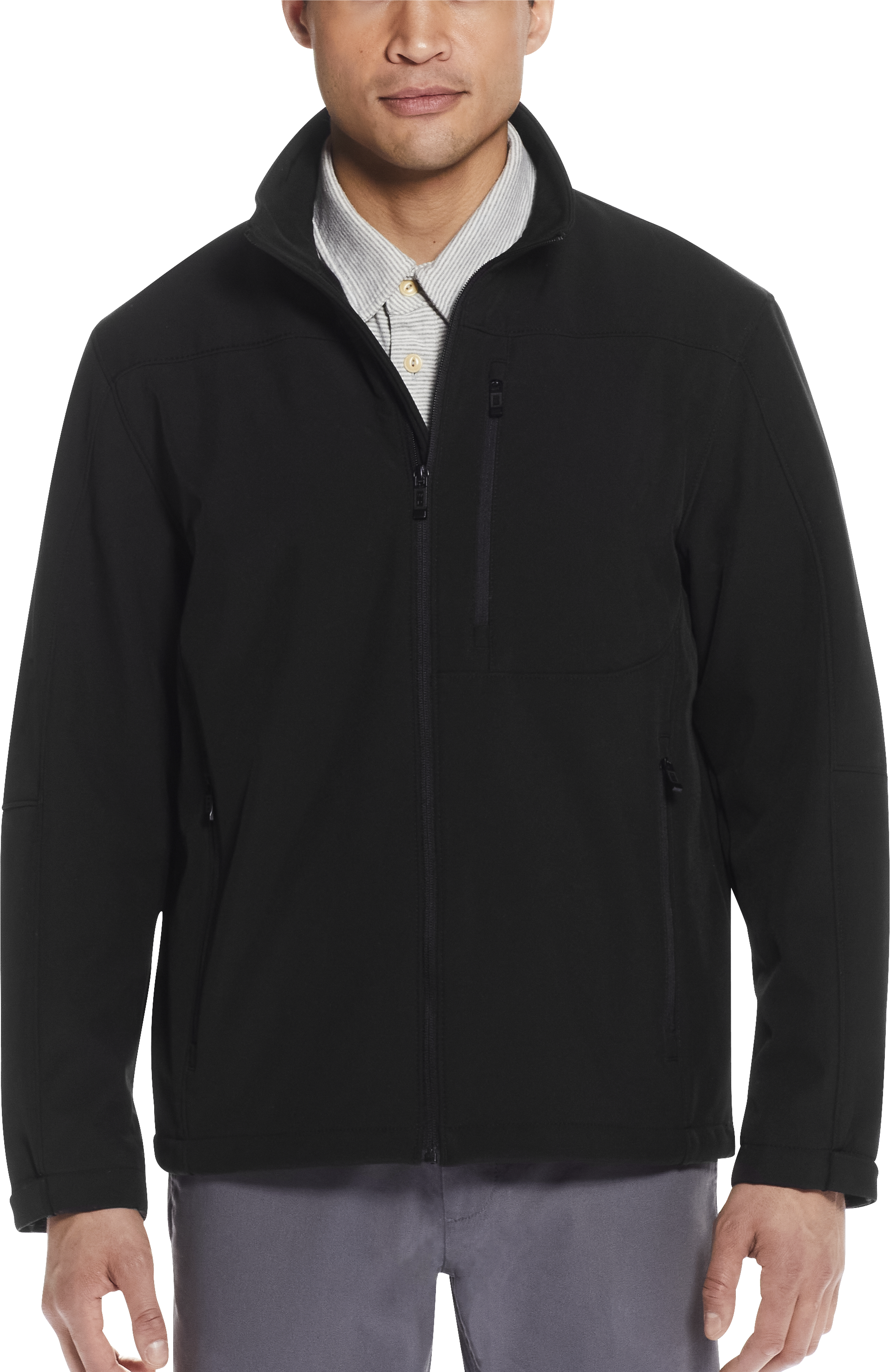 Here's your windproof wingman for those in-between days. This modern fit soft shell jacket packs just the right dose of casual cool while keeping out the chill. The stand collar says, "I've got this," as it blocks the breeze, while the minimalist design ensures you're sharp without trying too hard. Soft, lightweight, and washable—because effortless style should actually be effortless. Whether you're heading to the office or casually bossing the weekend, this jacket hits at the hip for a perfect, polished vibe. It's the quiet luxury you didn't know you needed but absolutely deserve.