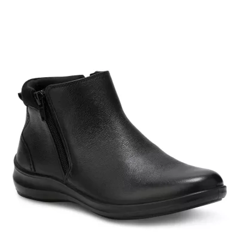 Leather upper with fabric lining Fully-lined, cushioned insole for all-day comfort Textured rubber outsole provides great slip-resistance, durability and shock-absorbing cushioning Heel Height: 1 1/2” Zip closure Padded insole Mexico Imported Product Specifications 1.5" 0.25 4" 12" M Material Fabric Leather