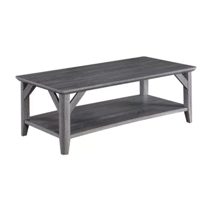 Invite your friends and family to a cup of coffee with the Winston coffee table with shelf by convenience concepts. The rustic style not only refreshes your home decor but adds a touch of nature with its wooden finish. Bringing with it the peaceful outdoor feel needed for daily relaxation. With two ample tiers, you will have enough space for multiple coffee mugs along with living room essentials. The tapered legs add a stylish detail to this design while ensuring sturdiness. This two-tier unit is constructed from particle board and mdf and it is finished with melamine, making this piece long lasting and easy to maintain. Ideal for your home office or den. It also comes with feet tacks for the legs that will prevent scratches on your floor. Enjoy right after delivery with its simple 6 step assembly! Available in multiple finishes. Complete the look with additional items from the Winston collection by convenience concepts. Each sold separately.