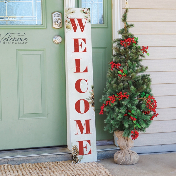 Greet guests with festive charm using this Wintry Welcome Porch Board! Crafted for durability and style, it’s an inviting way to celebrate the season and make visitors feel right at home. Porch board measures 8W x 0.5D x 46.5H in. Crafted of wood Features the word, "Welcome" Accented with snowflakes, greenery, berries, and pinecones Hues of white, red, green, and brown Made in the United States Safe for outdoor use Care: Wipe with a soft, dry cloth. This item is available at Kirklands.com only, not available in stores. Please note: this item cannot be shipped to APO/FPO addresses.