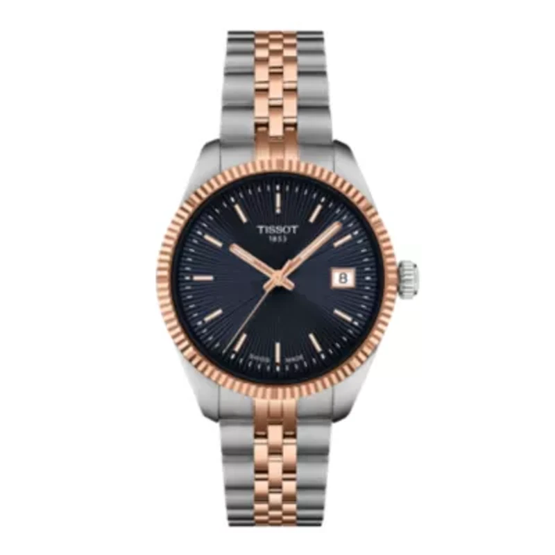 This watch is crafted to elevate your style for those truly special moments. The traditional guilloché dial with sunbeam rays reflects light beautifully, adding depth and elegance. The fluted bezel offers a sophisticated decoration representative of traditional watchmaking craftsmanship. The interchangeable quick-release bracelet offers maximum versatility, allowing you to easily change your look. Butterfly clasp Analog dial Automatic movement Polished finish Date display Choking hazard Warranty available, Limited liability warranty, 2 Years of Warranty Switzerland Imported Product Specifications 34.00 mm 34.00 mm Material & Care Stainless steel Clean with a soft cloth.