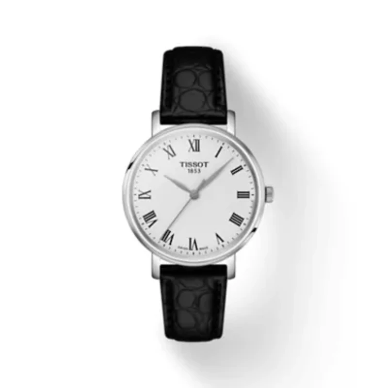 The Tissot Everytime is the perfect accessory for every occasion. Its classic and timeless dial design, both elegant and refined, makes it an eminently modern watch. Its minimalism allows you to let your imagination run free when choosing a compatible strap to wear it with. Buckle closure Analog dial Quartz movement Polished finish Date display Choking hazard Warranty available, Limited liability warranty, 2 Years of Warranty Switzerland Imported Product Specifications 34.00 mm 34.00 mm Material & Care Stainless steel Clean with a soft cloth.