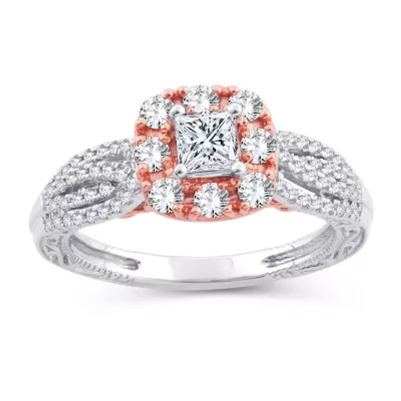 Womens 1 1/2 CT. T.W. Natural White Diamond 10K Gold Rose Cushion Engagement Ring