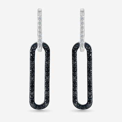 Womens 1/ CT. T.W. Natural Black Diamond Sterling Silver Paperclip Drop Earrings