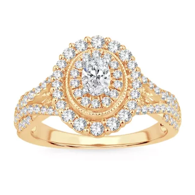 Womens 1 CT. T.W. Natural White Diamond 10K Rose Gold Oval Halo Engagement Ring