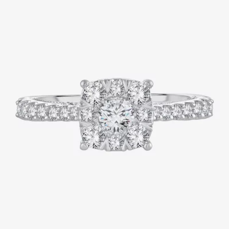Womens 1 CT. T.W. Natural White Diamond 14K Gold Cushion Side Stone Halo Engagement RingWomens 1 CT. T.W. Natural White Diamond 14K Gold Cushion Side Stone Halo Engagement RingWomens 1 CT. T.W. Natural White Diamond 14K Gold Cushion Side Stone Halo Engagement RingWomens 1 CT. T.W. Natural White Diamond 14K Gold Cushion Side Stone Halo Engagement Ring