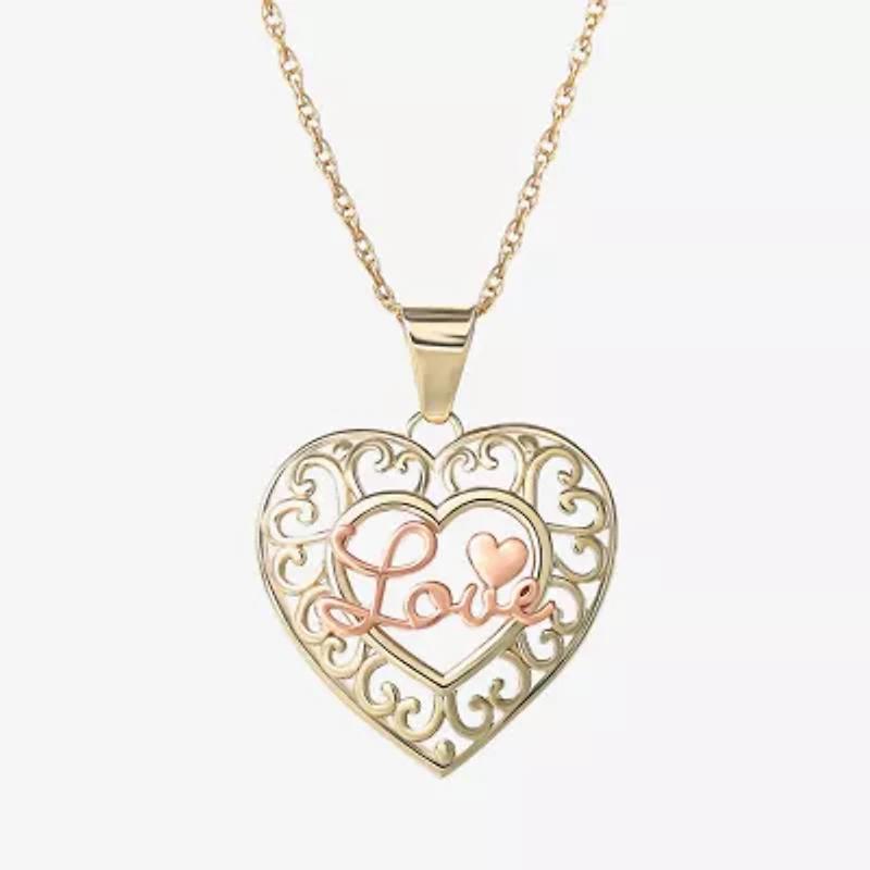 Womens 10K Two Tone Gold Heart 18 Inch Pendant Necklace