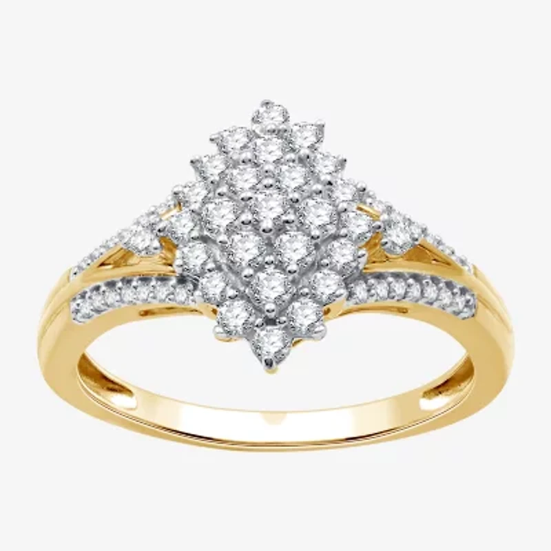 Womens 1/2 CT. T.W. Lab Grown White Diamond 14K Gold Over Silver Sterling Marquise Cluster Cocktail Ring