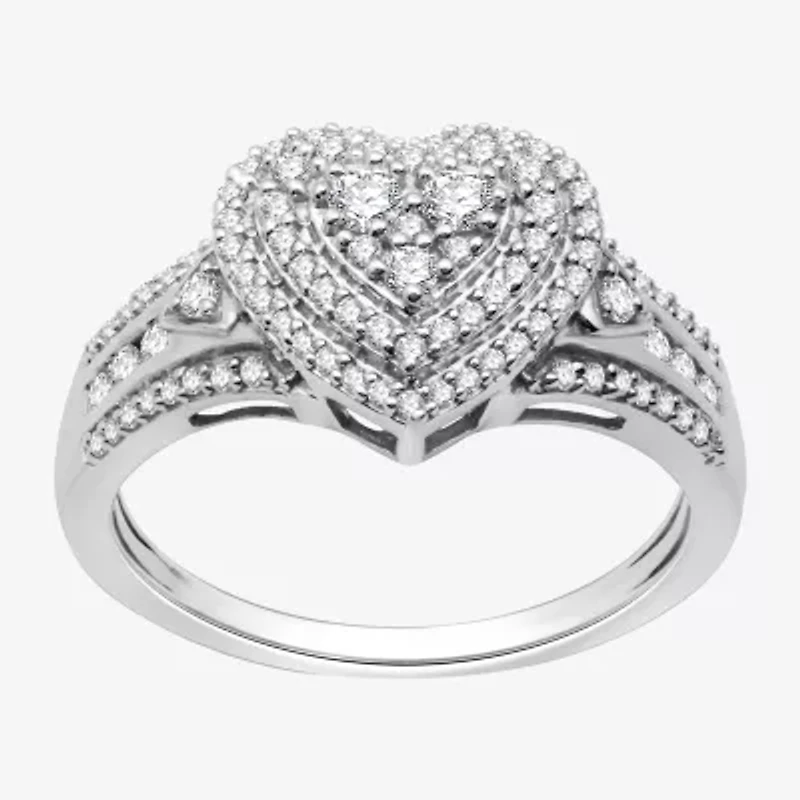 Womens 1/2 CT. T.W. Lab Grown White Diamond Sterling Silver Heart Side Stone Band