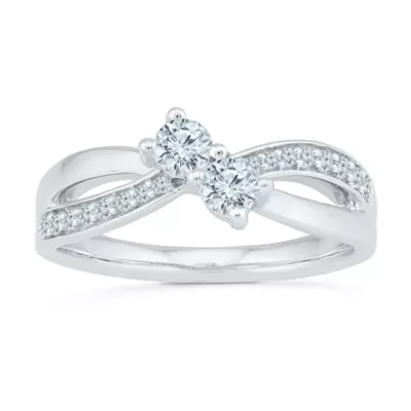 Womens 1/2 CT. T.W. Natural White Diamond 10K Gold Crossover Cocktail Ring