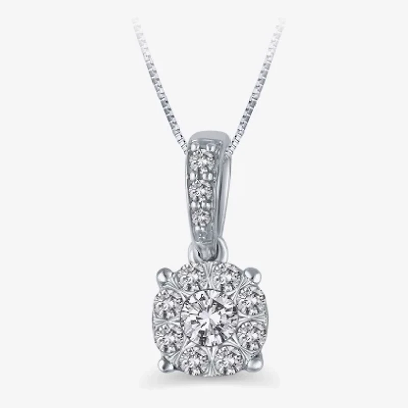 Womens 1/4 CT. T.W. Natural White Diamond 10K White Gold Round 18 Inch Pendant Necklace