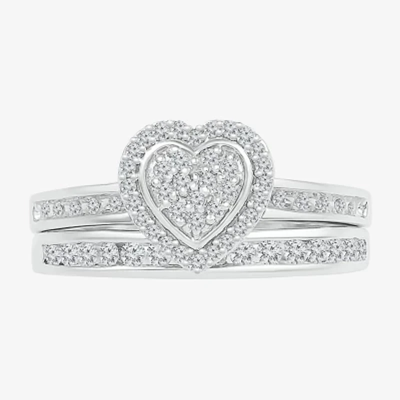 Womens 1/4 CT.T.W. Natural Diamond Sterling Silver Bridal Set