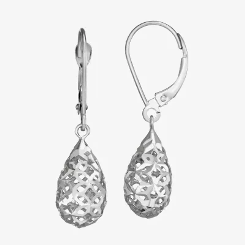Womens 14K White Gold Pear Drop Earrings