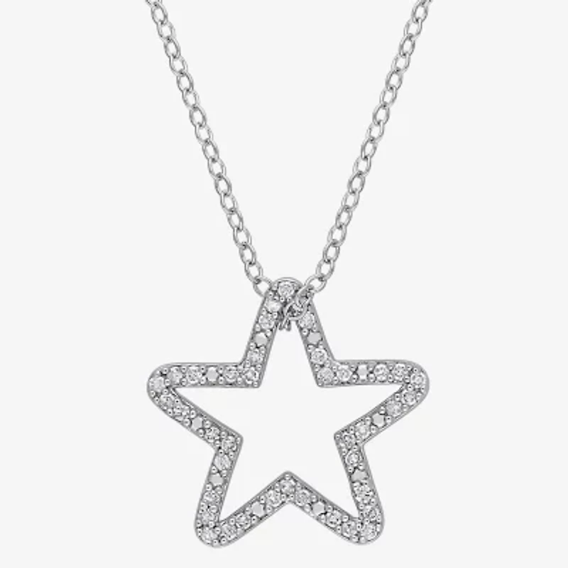 Womens 1/5 CT. Natural White Diamond Sterling Silver Star 18 Inch Pendant Necklace