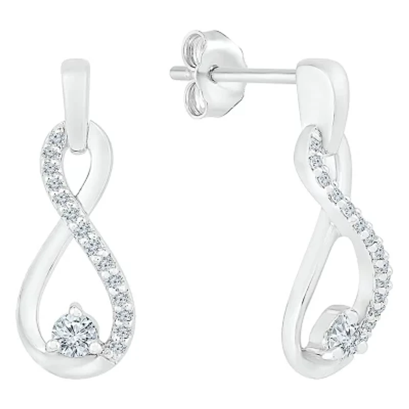 Womens 1/6 CT. T.W. Natural White Diamond 10K White Gold Infinity Drop Earrings