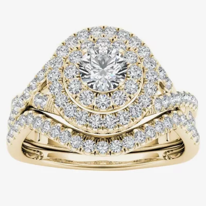 Womens 3/4 CT. T.W. Natural White Diamond 10K Gold Round Halo Bridal Set