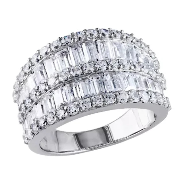 Silver Treasures Womens Cubic Zirconia Sterling Silver Band